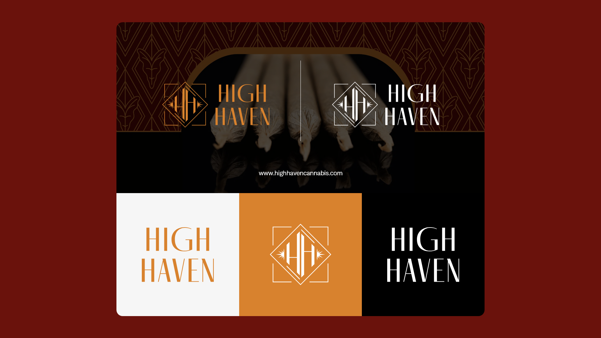 We knew from the start the High Haven logo had to be intrinsically connected to the refined elegance of the 1920s, which we completed by blending Art Deco influences with modern charm. The branding is sleek and sophisticated, with delineated geometrics that borders on architectural, accented perfectly by a luxurious gold palette. High Haven’s logo instantly speaks to folks who value individuality, who embrace the extraordinary, and who aren’t afraid to free themselves from the conventional.